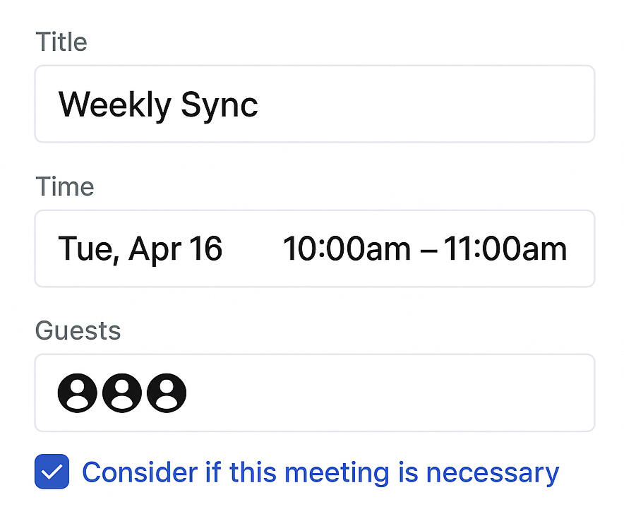 We help you stop unnecessary meetings before they hit the calendar, directly inside Google Calendar — no new apps, no extra logins, no added friction.